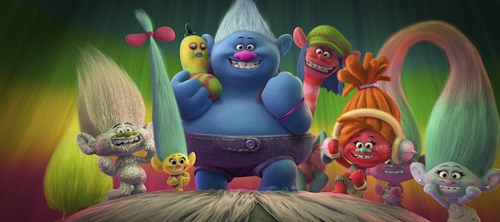 Troll Princess Poppy (Anna Kendrick) sets off with her callow friend Branch (Justin Timberlake) to rescue their troll friends who have been kidnapped by the Bergen’s, perpetually depressed monsters who can only experience happiness when they eat Trolls. Along the way and with many songs and dance numbers and much hair-flinging, Poppy and Branch help King Gristle of the Bergen’s (Christopher Mintz-Plasse) fall in love with dowdy chambermaid Bridget (Zooey Deschanel)