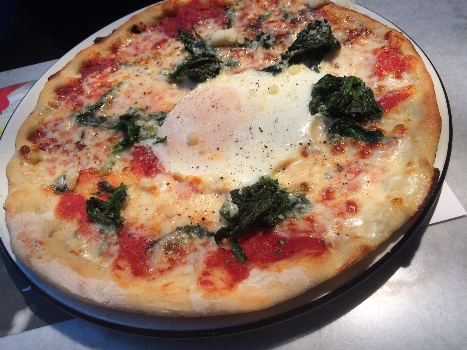 He samples a Fiorentina, bringing together spinach, free-range egg, mozzarella, tomato, garlic oil and black olives, all finished with Gran Milano cheese.