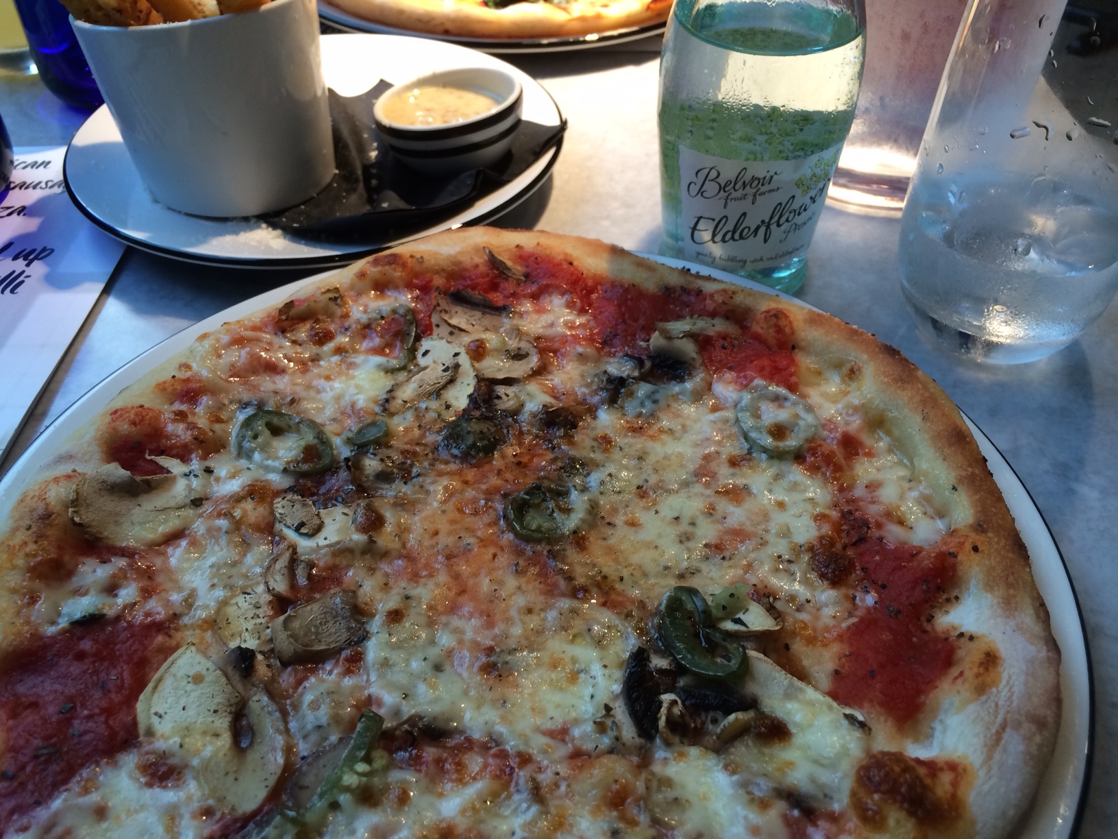 I take the classic margherita, but spice it with jalapeños.