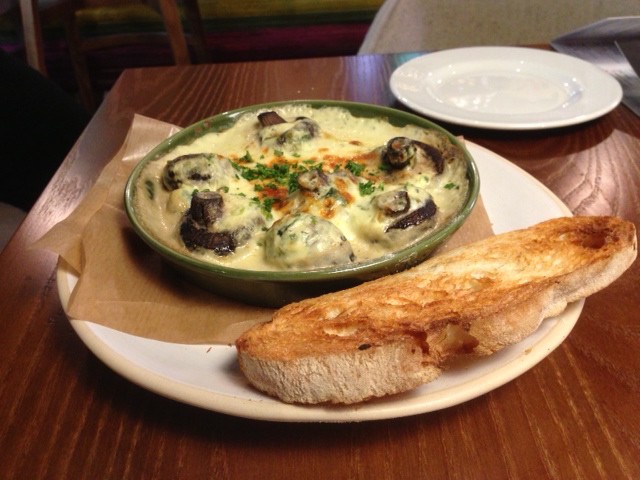 The mushroom driven dish is served in a creamy mascarpone, garlic and spinach sauce. A hunk of ciabatta sits on the side, soon to be demolished.