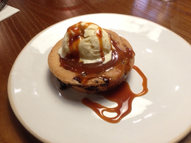 It arrives warm, with vanilla pod ice cream and caramel sauce for accompaniment and proves our downfall.