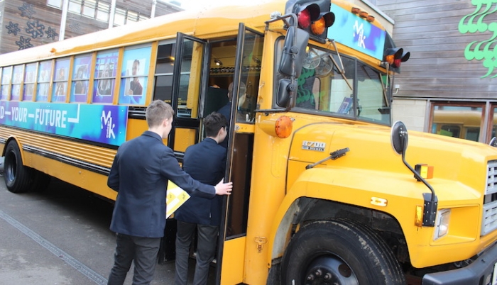 MK College is hitting the road this weekend, visiting schools in and around Milton Keynes in a big yellow bus.