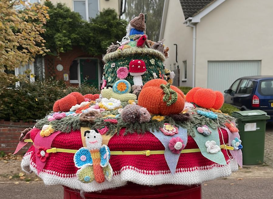 The postbox topper is cheering up residents and visitors to Lakes Lane in Newport Pagnell, and it has special significance for the lady responsible.