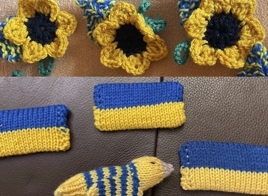 Newport Pagnell's clever needle clicker Knitting Nana has been hiding sunflowers and mini knitted Unrainian flags around the town in recent days.