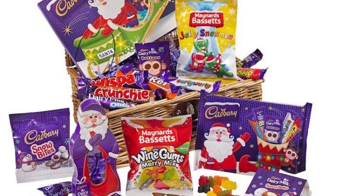 The box includes Selection Boxes, Christmas sweets, a Dairy Milk Novelty Chocolate Santa, Dairy Milk Buttons, Dairy Milk white and milk chocolate Christmas bar and Snow Bites. Our favourites?