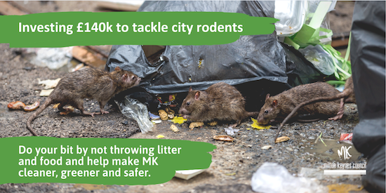 Cllr Emily Darlington, Cabinet Member for the Public Realm said: “We are committed to keeping MK cleaner, greener and safer. We are tackling rats, but we need residents to do their bit as well by removing their food sources and we urge everyone not to drop litter and food waste which makes it easier for rodents to breed.”