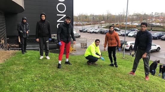 Members of the Ahmadiyya Muslim Youth Association (AMYA) joined forces with MK Rotary club and MK Dons SET to plant purple crocus flowers at MK Dons as a symbol for supporting the End Polio Now Campaign.