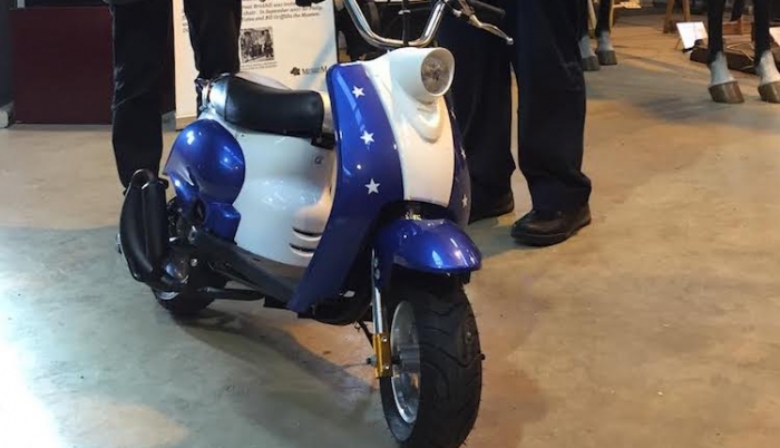 This latest donation, the miniature Vespa, is in immaculate condition, having never been used. It runs on two stroke mix and is capable of speeds up to 50mph.