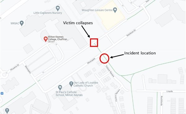 The victim was stabbed near the junction of Palace Square and Rainbow Drive in Leadenhall. After being stabbed, he then moved towards the Chaffron Way campus of Milton Keynes College and collapsed on the redway outside.