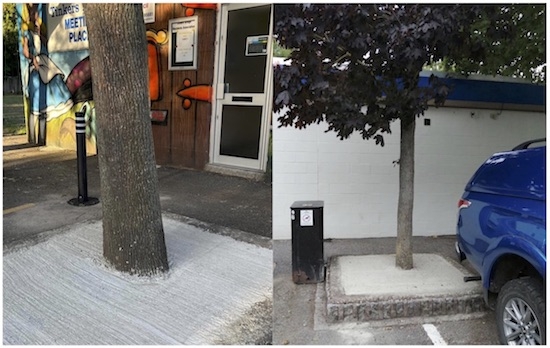 “It makes no sense environmentally when we are being encouraged to protect wildlife, help the trees, help the bees and the like, to then have someone come along and encase trees in what are essentially concrete coffins, destroying what were healthy flowerbeds.
