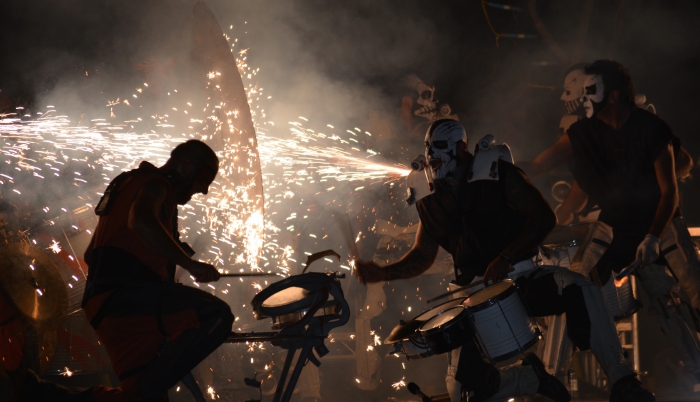 International companies Les Commandos Percu (from France) and Deabru Beltzak (from the Basque region of Spain) did battle in the streets using drumming, fearsome war-like chanting and stunning pyrotechnics.