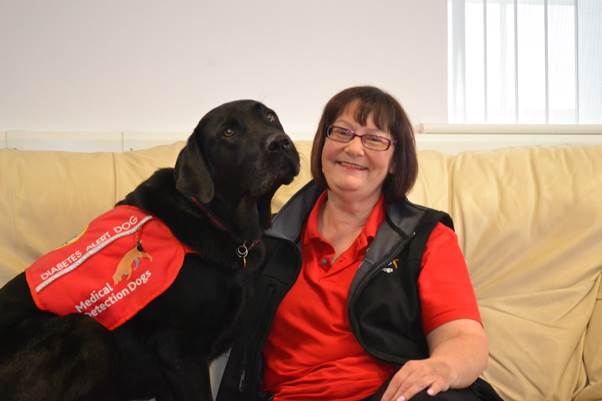 Black Labrador Simba was trained by MDD. He is able to alert her to dropping and raised blood glucose levels, by picking up on an odour change undetectable to humans.