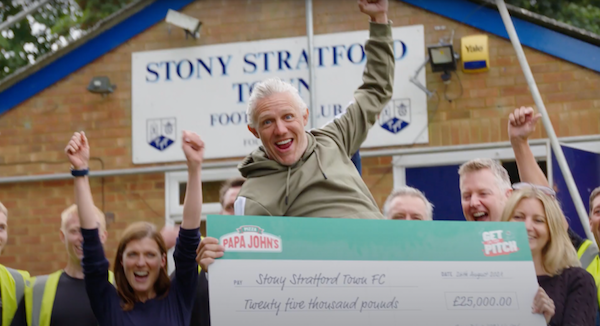 As grassroots football clubs all over the UK continue their post-pandemic recovery, Stony Stratford Town FC has received a major boost from pizza delivery brand Papa John’s with a £25,000 donation made to the club as part of its ‘Get on the Pitch’ campaign.