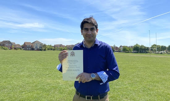Saaed Nazir (pictured) - of the Ahmadiyya Muslim Youth Association and a science teacher at St. Paul’s, for his work with the Milton Keynes Soup Run providing weekly food donations to the homeless, with local care homes, the annual Poppy Appeal and planting trees in Milton Keynes.