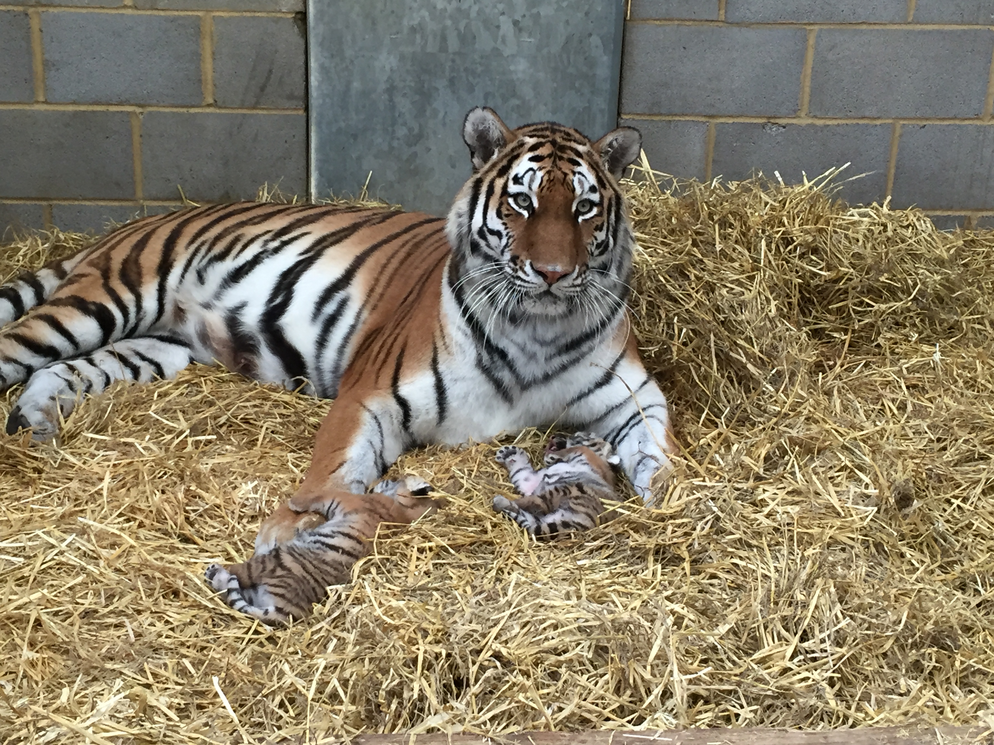 The proud new mother and her two cubs are all together in a special private den, away from the public, with as little disturbance and noise as possible. The cubs will start to explore the nine acre tiger reserve in early 2016, until then they will continue to be under the constant watchful eye of their mother. Genetically, Minerva is ranked as the 7th most important female in the captive tiger population across Europe and together with the cubs’ father Elton, they are a very important genetic match, coordinated by the European Endangered Species Programme (EEP). There are 326 Amur tigers (also referred to as the Siberian tiger) in captivity across Europe and Russia, and only approximately 520 in the wild – a slight increase in wild numbers in the last 10 years.“This is the first litter for Minerva and Elton and so far she’s doing a great job as a new mother, although there is still a lot for her to learn,” said Jo Cook, Co-ordinator at Amur Leopard and Tiger Alliance, and also species coordinator for the European Breeding Programme.