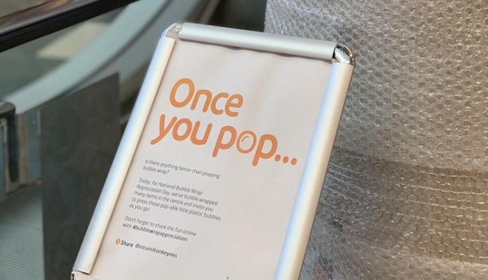 Visitors ‘pop’ into intu Milton Keynes for Bubble Wrap Appreciation Day
