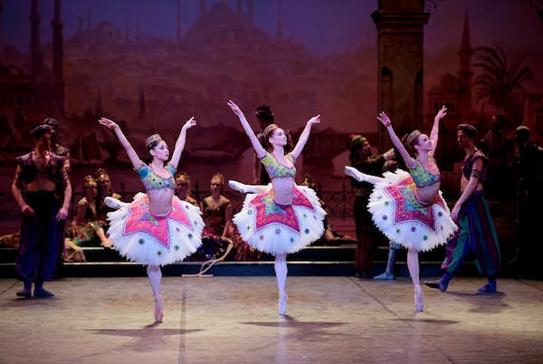 Restaged especially for English National Ballet by former ballerina turned Le Corsaire curator Anna-Marie Holmes, the production has gorgeous costumes and cinematic sets by Hollywood film designer Bob Ringwood. His designs transport us from a bustling Turkish bazaar to a hidden cave, a sumptuous palace and, finally, to the stormy sea for a stunning shipwreck.