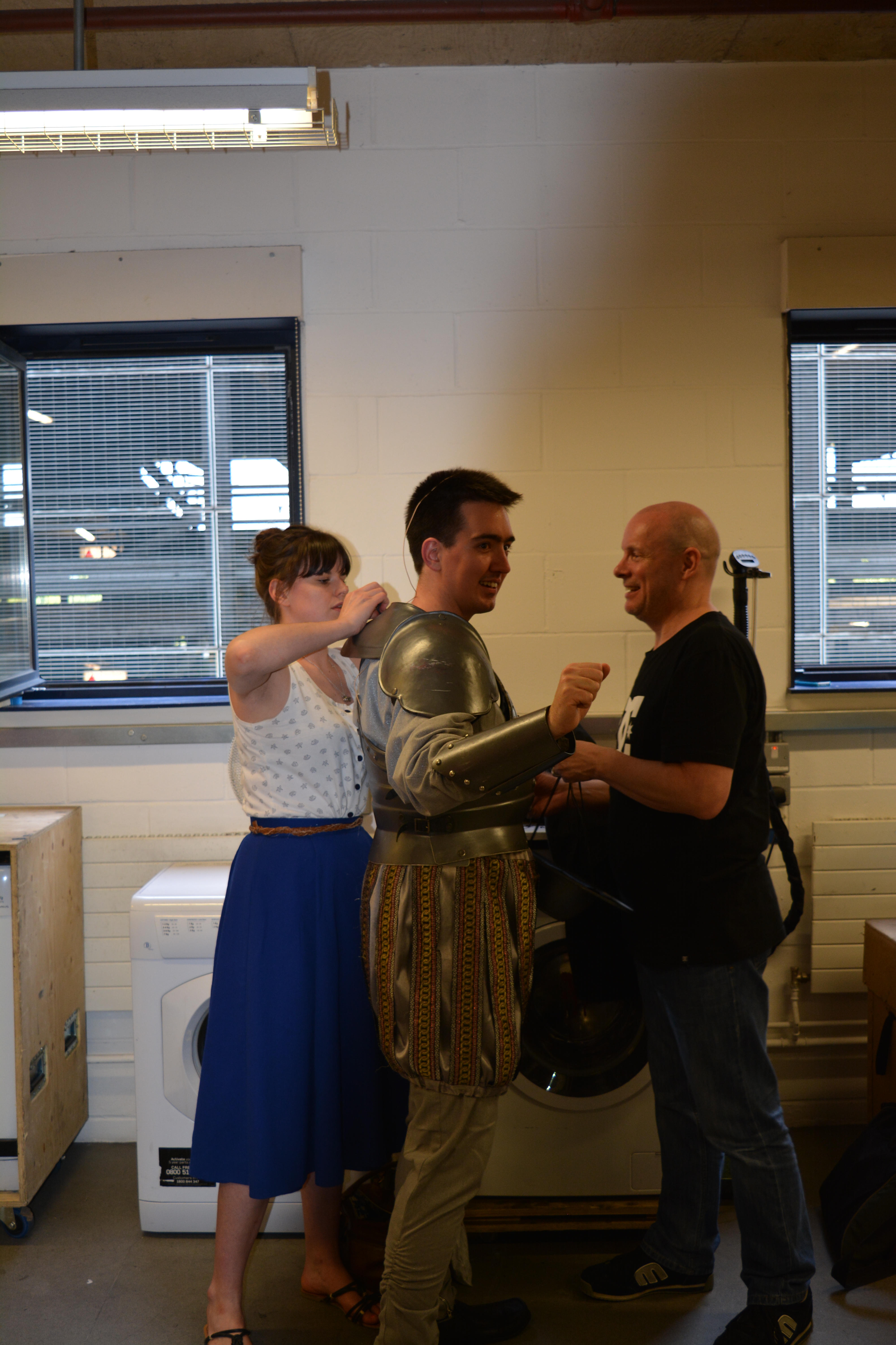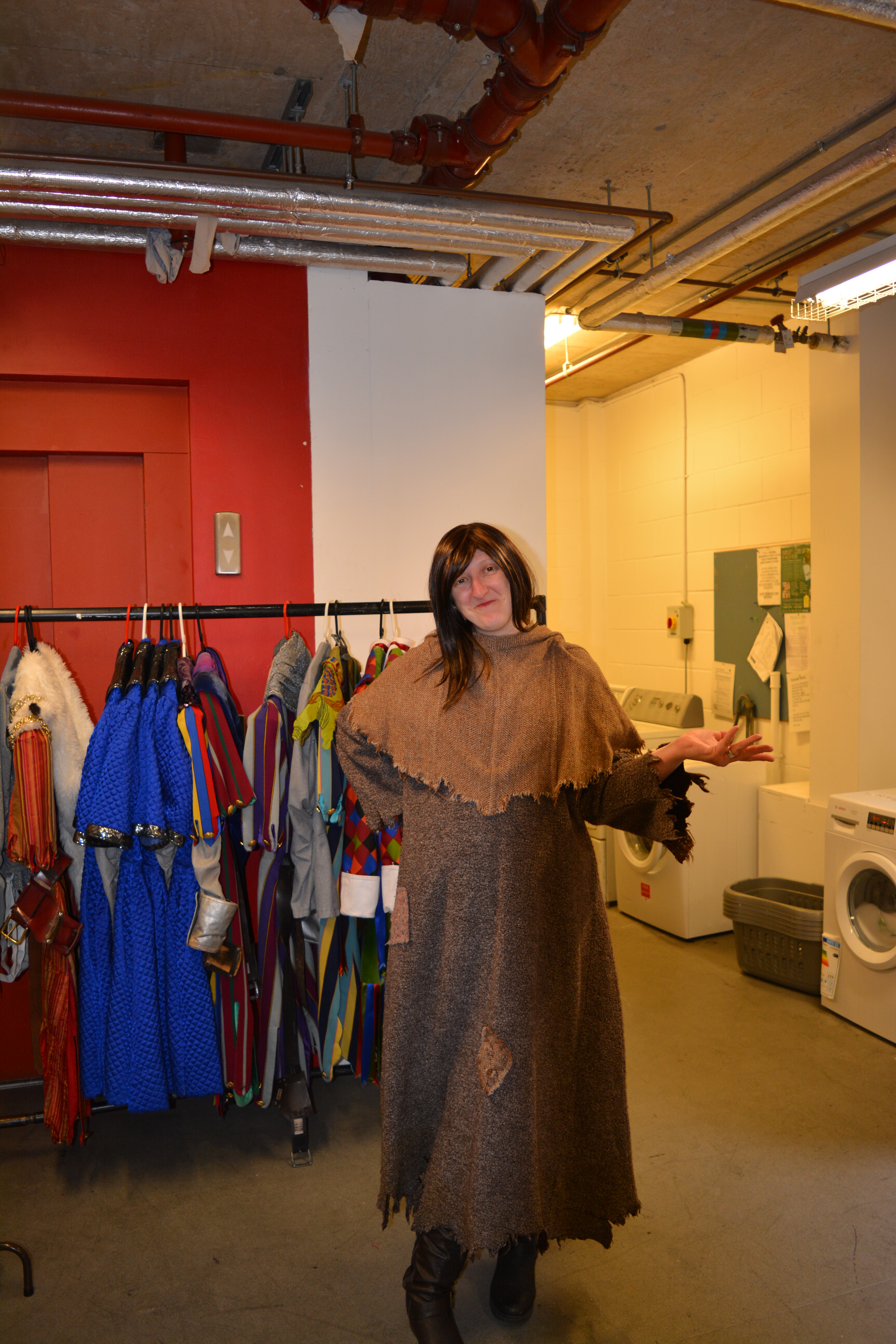 I'm with 'partner in cameo' Steve Mills (he is playing Sir Not Appearing) and company manager Phil Sykes meets us at stage door,whisking us straight to wardrobe master Iwan Harries, and deputy Nia Evans who are waiting to get us kitted up.