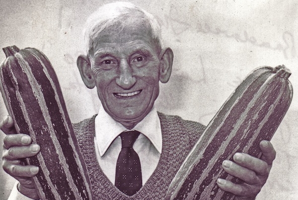 Today (October 1) is World Vegetarian Day and to celebrate here’s Mr Archie Latall judging the produce at Bradwell Fruit & Vegetable show, early 80s, and he’s clearly very happy with the marrows!