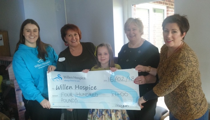 Megan was officially thanked by Willen Hospice when she presented the fundraising team with a cheque for the amount she has raised.