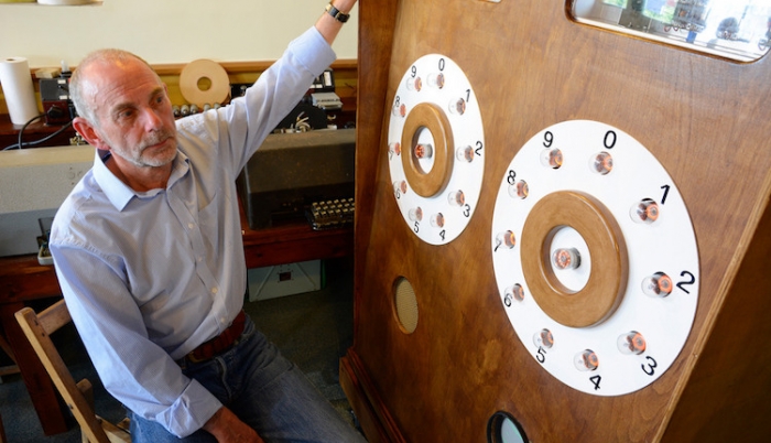 Pic: Phil Hayes, Chief Engineer of Colossus Rebuild, with the working reconstruction of the ERNIE proof of concept.
