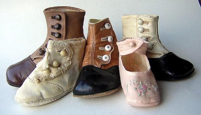 To set them in the context of fashion of the time, button boots for adults and children are on show together with gloves, collars and other related items such as glove stretchers and powderers.